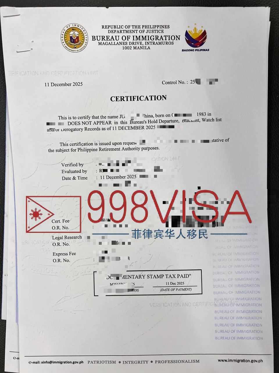 如需咨询或办理菲律宾移民局BICC清单相关业务,可以联系菲律宾华人移民998VISA: