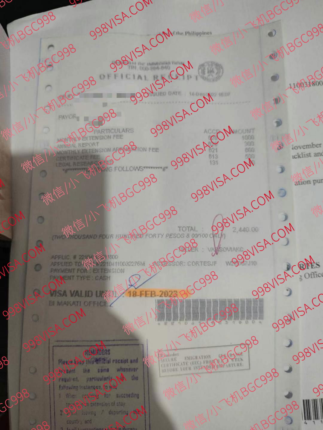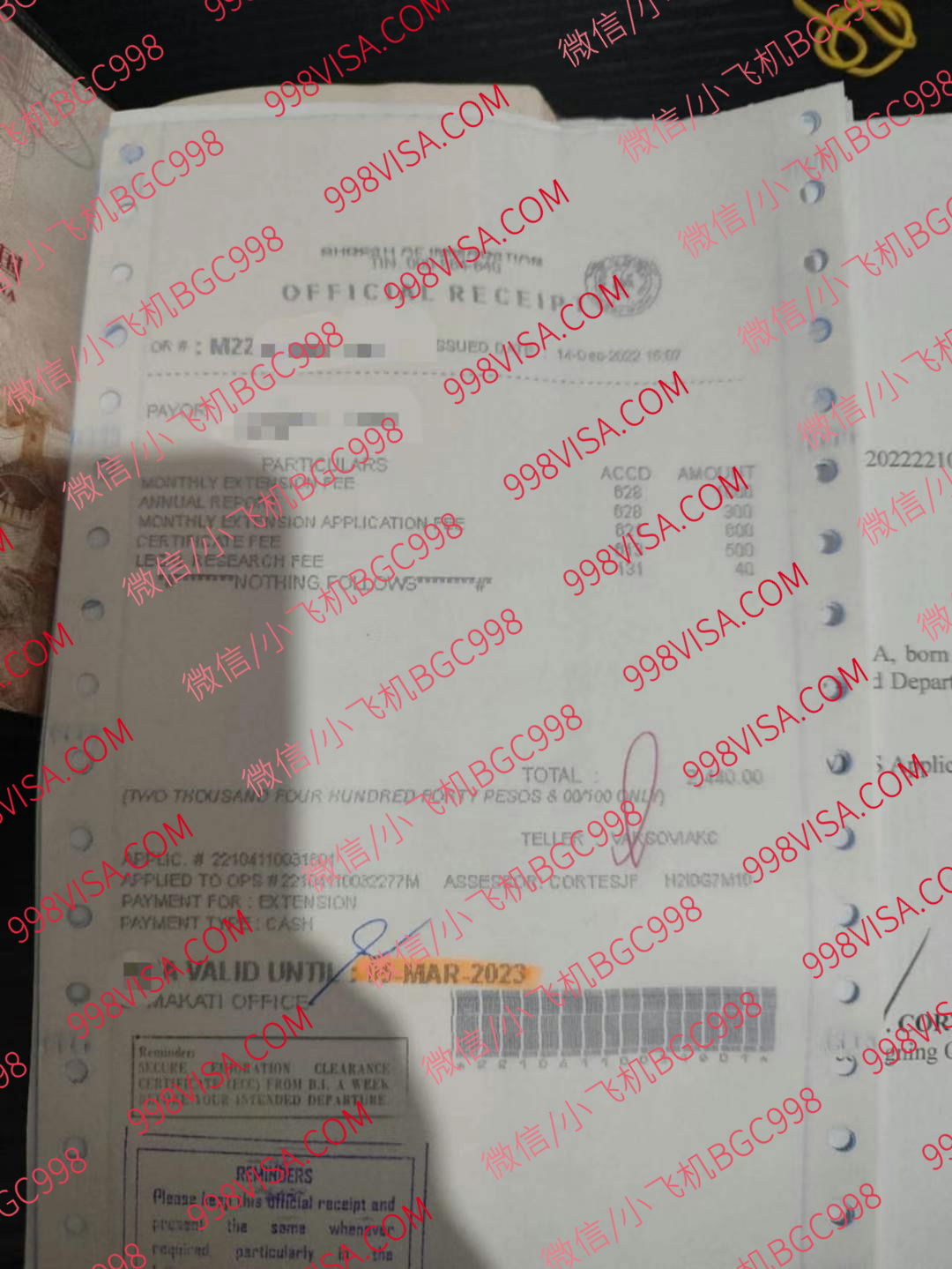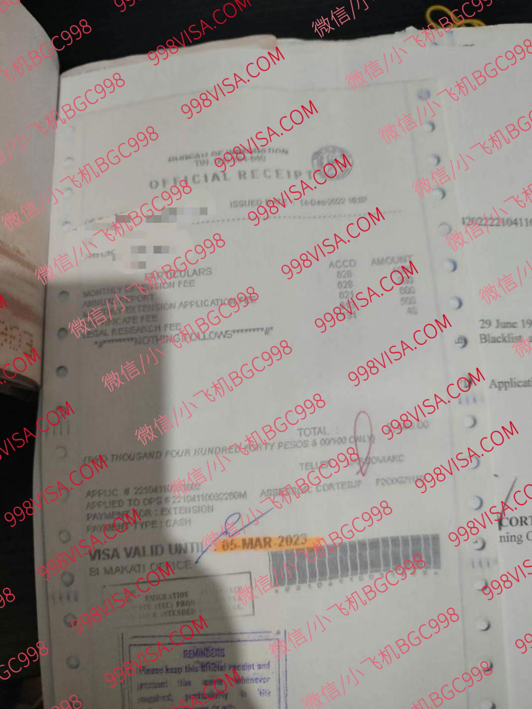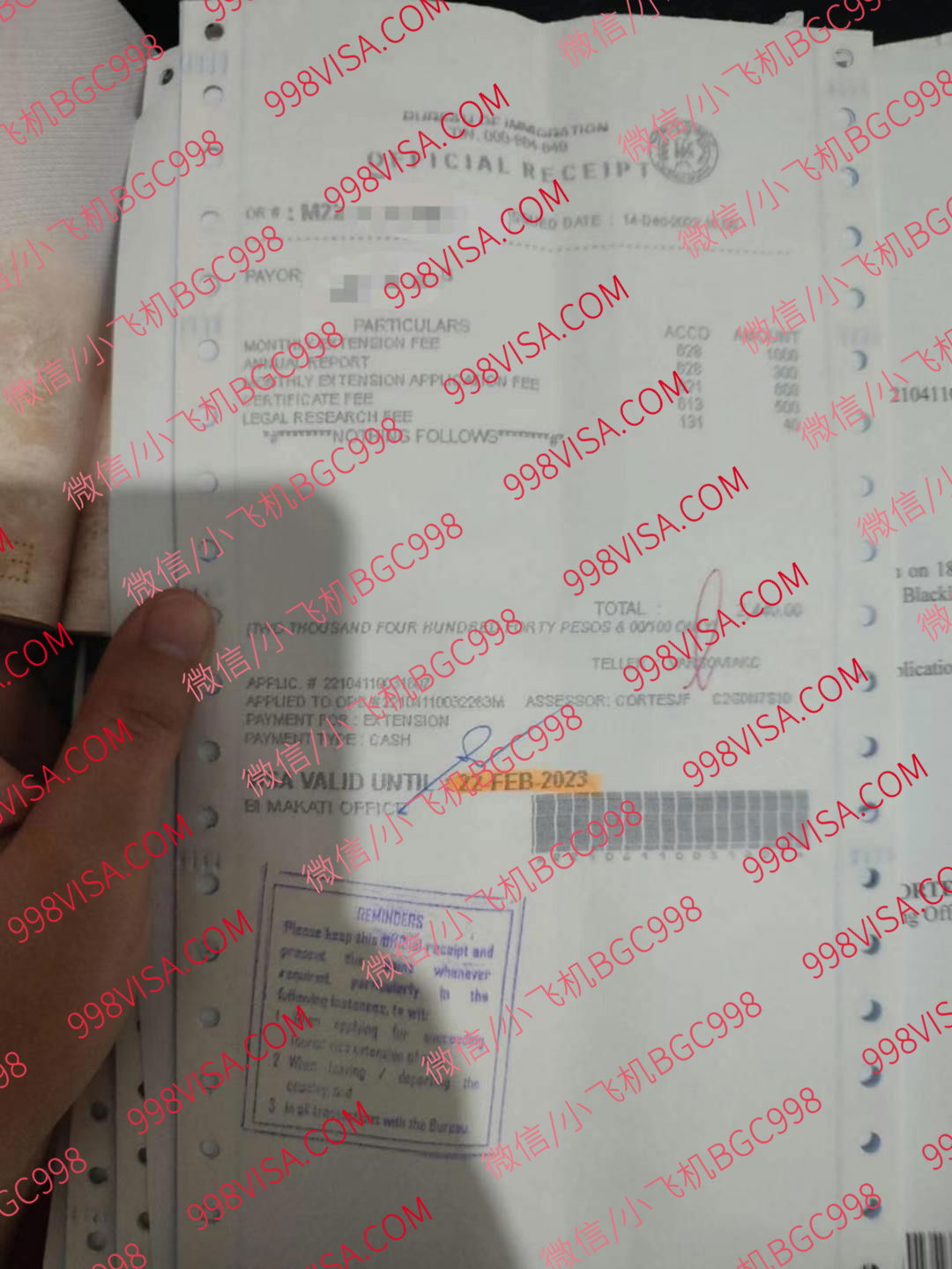 注意:实际价格移民局发票为准,逾期每个月罚款500 服务费用 : 延期1个月 1500比索 延期2个月1500比索 延期6个月 2000比索